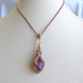 天使のギフトと称されるマダガスカル産アメジスト原石(ファントムエレスチャル)と良質な11月誕生石で人気のブラジル産天然シトリンを合わせたマクラメ編みペンダントネックレスです。