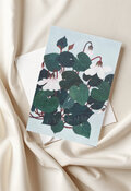 白いシクラメンの花を描いた、水彩画のポストカード「3枚セット」です