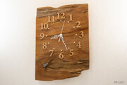 屋久杉とは、屋久島に自生する樹齢1000年以上の杉の木のことです。従って、木目も1000年分以上あり、一般の杉材より、その表情が豊かになり、個性的になります。高級材として家具、建具のほか建築の天井板、欄間、工芸品などに使われています。 その屋久杉の原木から切り出された無垢板の断面と下部にある木の洞(うろ)をそのまま残して時計にしました。屋久杉ならではの緻密な木目と1000年の風雪を感じさせる洞(うろ)は、屋久杉千年の息遣いを感じさせます。