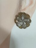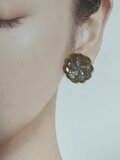 水牛にお花のカービング、シックで使いやすいカラーのピアスです。