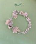 ホワイトの濃淡で染めた花々を一列に配して作ったシンプルですがとても可愛いウエディングの髪飾りです。