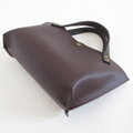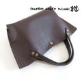 ◎ダークブラウンの細かいシボ目のボディにさらに濃い目のスムースブラウンのハンドルを合わせてカフェオレブラウンのステッチでアクセントを付けました♪