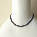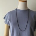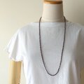 小粒のラピスラズリとブロンズカラーのヘマタイトのロングネックレス。