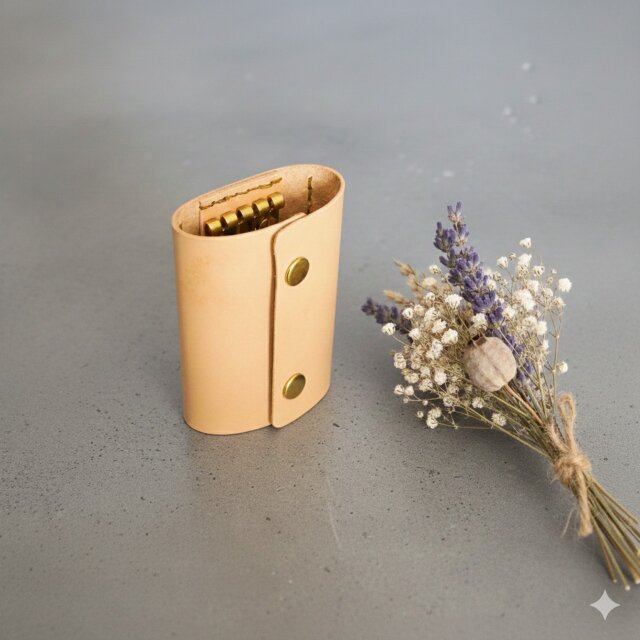 鍵とカードを美しくまとめるレザーケース。