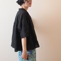 適度な落ち感で、着る度、洗う度に雰囲気の出る天日干しリネンを使用して作成した、5分袖のブラウス。