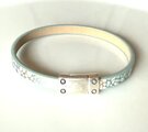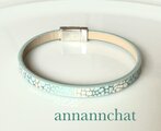 ヨーロッパ製の メタリックな模様が入ったミントグリーン 5mm幅のコード で 着脱簡単なブレスレットを作りました。