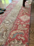 本日届きました。 早速リビングに敷いたところです。 写真どおりの素敵な色柄です。 ひとつ残念だったのは重みのためか、 包装紙が一部破れていました。 幸いなことに中身に影響はありません。 角や辺など擦れやすいところは二重にする等していただくと良いかと思います。