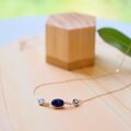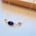 12月の誕生石、ラピスラズリの両サイドに、同じく12月の誕生石タンザナイトをあしらった3粒ネックレス。