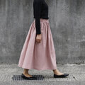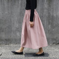 コットンリネン ギャザースカート( グレイッシュピンク )リネン 綿 麻 ロング マキシ ポケット