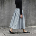 コットンリネン ギャザースカート( グレイッシュブルー )リネン 綿 麻 ロング マキシ ポケット