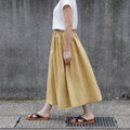 コットンリネン ギャザースカート( ストローイエロー )リネン 綿 麻 ロング マキシ ポケット