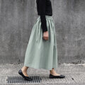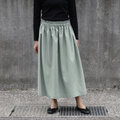 コットンリネン ギャザースカート( セージグリーン )リネン 綿 麻 ロング マキシ ポケット