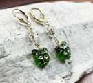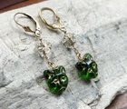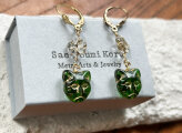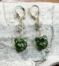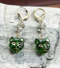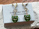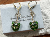 愛らしい猫ちゃんフェイスにカットされた、チェコガラスのフレンチフックピアス