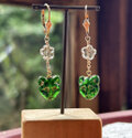 猫と花◇チェコガラスK14GFピアス(K24フック変更可)◇1点限定◇
