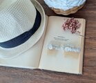 □素材:天然水晶、淡水パール、真鍮ワイヤー、ガラスビーズ、レース