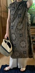 数えてみたらなんと7着目。詰まった首元が好きなのですが縫製や着用時の便利さの確保の難しさからか和物生地のリメイクデザインでみかけることが少ないです。しかし今回は私の好みにベストフィットでした。長時間でも心安らかに着ていられそうです。一つ残念なのは後ろ襟元下の皺。でもプラス要素一杯なので気にしないことに。 また同じようなデザイン期待しています。