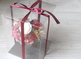 セロファンにリボンを付けラッピングした状態で梱包しお届け致します。