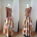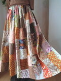 パッチワークスカート 大人可愛い ギャザースカート ロングスカート フレアスカート ティアード ティアードスカート マキシ丈スカート チェック 花柄 ストライプ YUWA 水玉 ドット カラフル 春夏 秋冬 パリ ロマンティック ゆったり ウエストゴム サイズフリー ロングシーズン対応可能 ボリュームスカート ボリューミー ご褒美 1点もの アート 着るアート アートを纏う 美しいスカート 誰ともかぶらない オレンジ 柿色 ブラウン 茶色 グリーン ベージュ コーラル