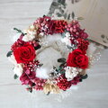 プリザーブドフラワーの真っ赤なローズをメインにした華やかで上品なアイアン付きのアレンジメント。