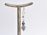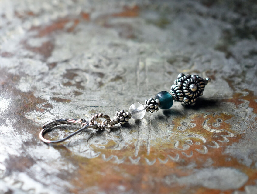 ハンドメイドシルバーとインディゴブルービーズ、古代水晶の片耳ピアス