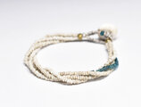 アンティークホワイトシードビーズとエメラルドブルーアンティークビーズの4連ブレス(貝留め金)