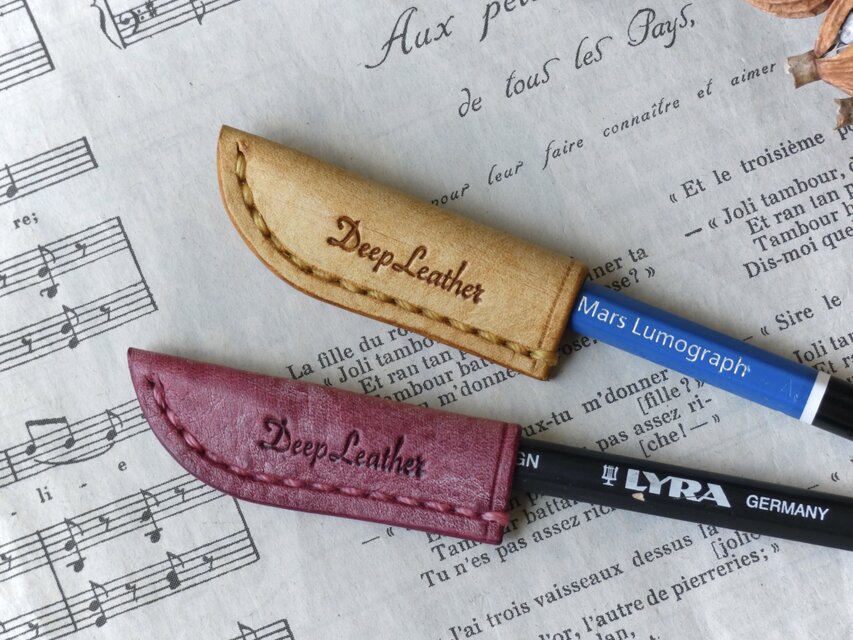 イタリア革の鉛筆キャップ/ペンシルキャップ/2個セット/ラズベリー&イエロー
