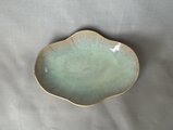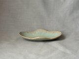 釉薬の自然な景色が広がる木瓜型の長皿です。
