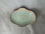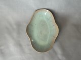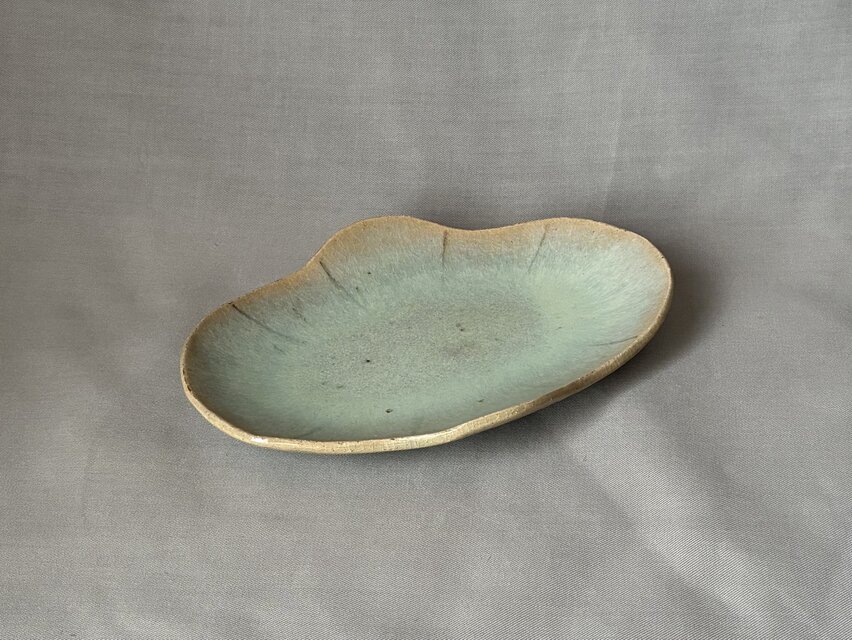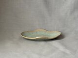 釉薬の自然な景色が広がる木瓜型の長皿です。
