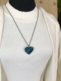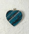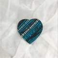 可愛いハート型のペンダントにもなる裂き織りブローチ(ターコイズ)