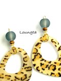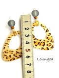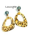 送料無料‼️ヒョウ柄ピアス 大ぶり グレーガラスビーズ 樹脂ピアス