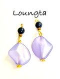 送料無料‼️チェコビーズピアス チェコビーズネイビー パープルの綺麗なピアス 樹脂ピアス