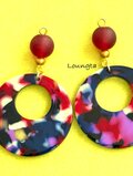 送料無料‼️ レッドガラスビーズの大ぶりピアス 樹脂ピアス