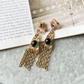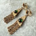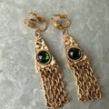 グリーンカボションがアクセントになった、ゴールドトーンフリンジイヤリング。