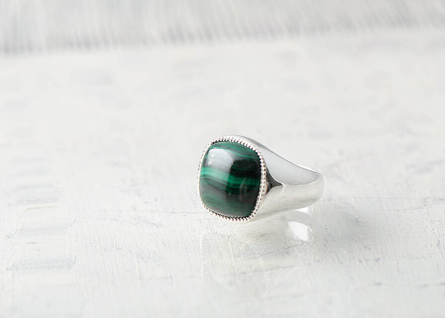 『Délice デリス』シリーズからクッションカットのマラカイト シルバーリング。