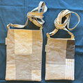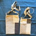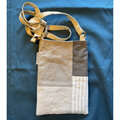 いろいろなリネンをパッチワークしたスマホショルダーです。