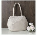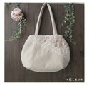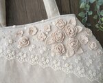 たくさんのレース編みの薔薇や小さなお花を散りばめた、アンティークのような雰囲気のあるコットンリネンのバッグです。