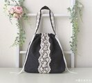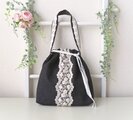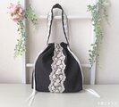 クラシカルな雰囲気の薔薇のスカラップレースとブラックのヨーロピアンリネンを使用して、大人可愛い巾着バッグを作りました。