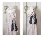 持ち手にはふっくらとした薔薇が可愛いレースを縫い留めました。少し長めですので肩に掛けてもお使いいただけます。