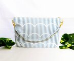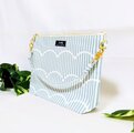 北欧柄ストライプにウェーブ柄(波型柄)アーモンドグリーン色(ブルーグリーン色)の綿オックス生地を使用しています。