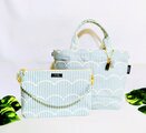 suma 様の専用ページ以前sold outで残念だった大きめサイズのお出掛けバッグを、先日購入しました2wayバッグとお揃いの柄で迅速且つ美しく作成していただき、嬉しさいっぱいで眺めております。 取り外し可能な底板でしっかり自立し、使い勝手の良いポケット、内側に便利なナスカンまで付いて、機能性も抜群です。2wayバッグとお揃いで楽しんで使わせていただきます。 この度もありがとうございます。