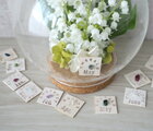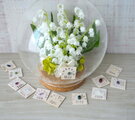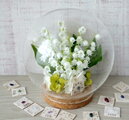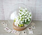 コロンと丸くて可愛いガラスボトルの中にアーティフィシャルフラワーの可憐なすずらんをメインにした誕生石のフラワードーム。