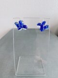 マーブル粒々のガラスを重ね焼きピアスを製作しました。