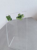 ガラスなので見る方向、光の入り方によって表情が変わるピアスです。