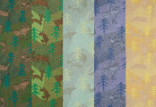 金色に葉がきらめく樹々、北欧の森の絵本のような世界を表現。
