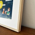壁に立てかけても、裏面の紐を使って壁に掛けても飾れます。