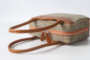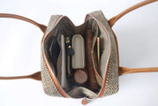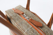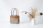 英国製「Harris Tweed(ハリスツイード)」と本革を組み合わせた、ミニサイズのスクエアトートバッグです。