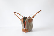 今回は綿花の色味そのもまの「キナリ」を使用しています。繊維が長く丈夫な”コーマ糸”を、貴重な織機で丁寧に織った耳付きの一級品です。ひと目ひと目に強い凹凸とうなりを感じる、風合い豊かな自然素材。帆布の上に細かい黒いポイントがはっきり見えるが、これは汚れではなく、元の生地における