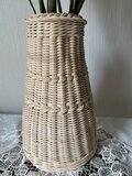 二色のヒガンバナと吾亦紅を籐で編んで、籐の花器にアレンジしました。
