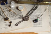 ワイングラスを持つ手元に、クラシカルなネックレスが映えるシーン。