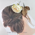 エクリュな薔薇と秋の葉の髪飾り フラメンコ フローレス 花径8cm エクリュ 薔薇 舞台 発表会 頭飾り 花飾り
